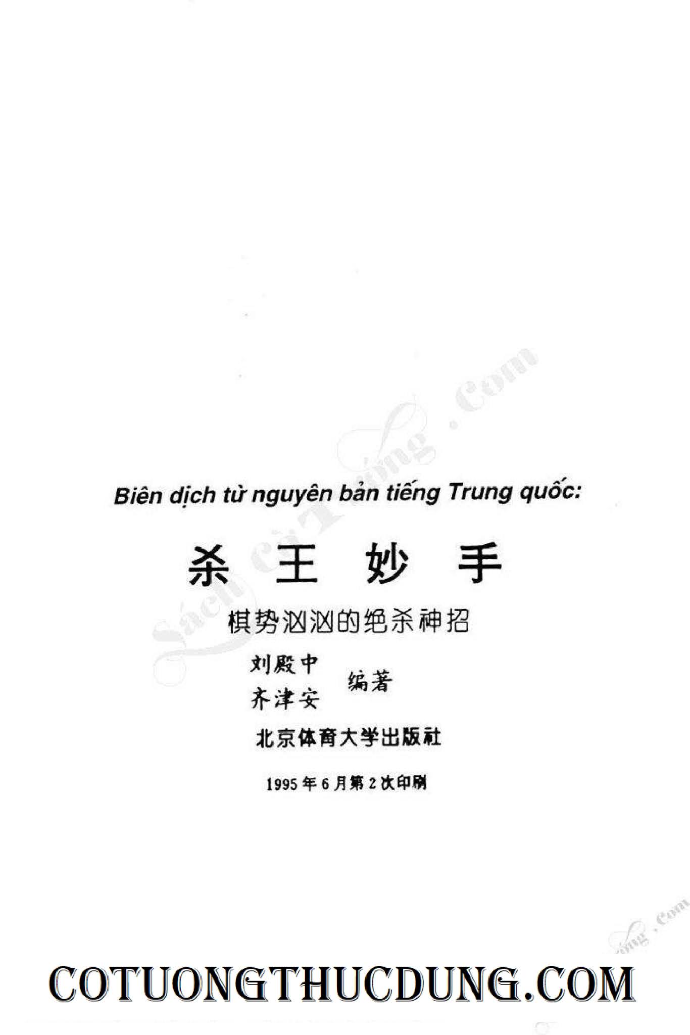 Với hơn 200 ván ví dụ được tuyển chọn trong sách này đối với độc giả mà nói thì chỉ có tác dụng giới thiệu sơ lược, ném ngói dẫn ngọc mà thôi. Độc giả cần cố gắng luyện tập và rèn luyện năng lực thực chiến để nâng cao khả năng sát vương. Hiểu biết nhiều và không ngừng ứng dụng, tổng kết thì mới có thể vận dụng chiến thuật sát vương một cách thuần thục trong thực chiến. Nếu muốn học một biết ba thì trước hết phải từ học ba biết một, đúng không?