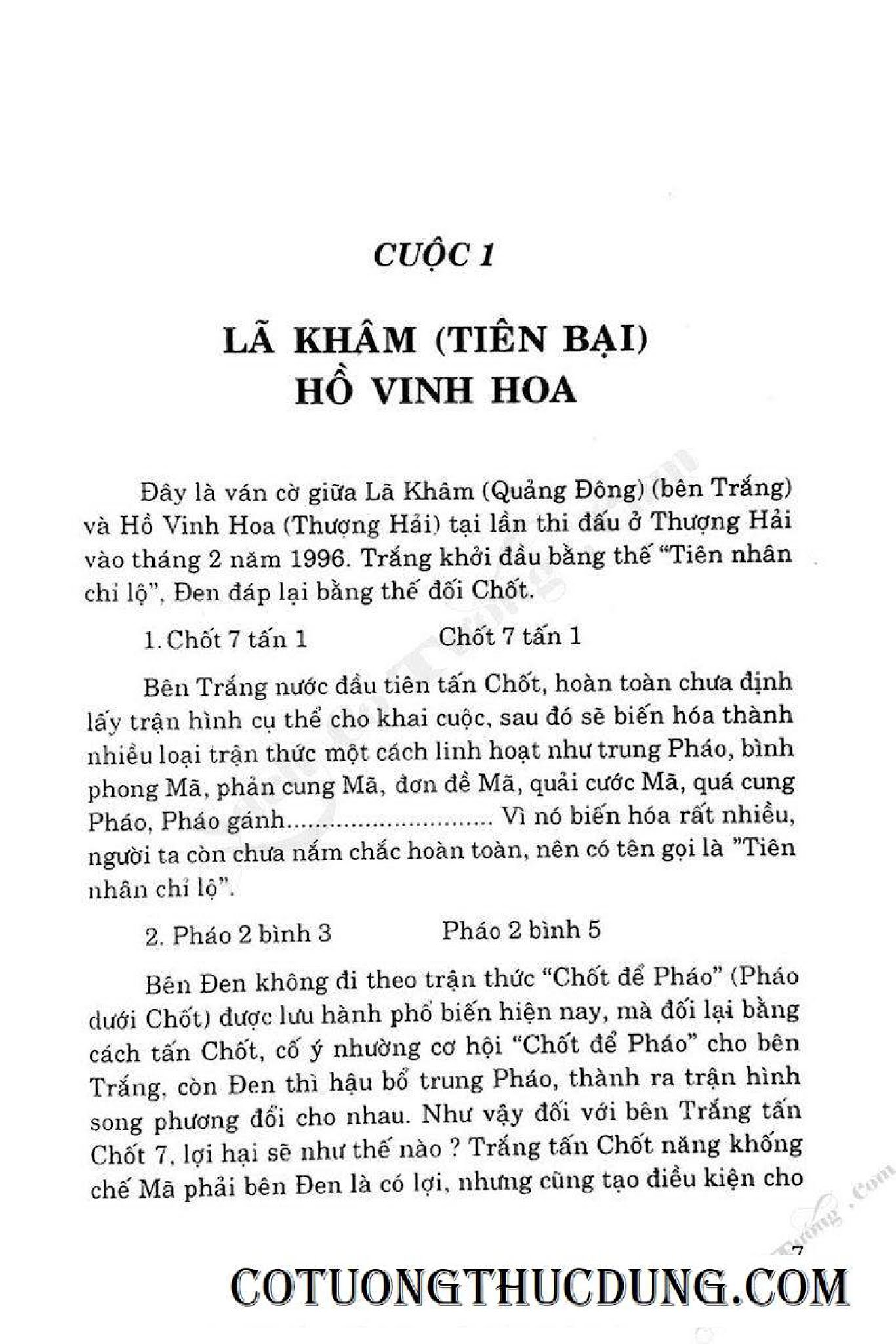 - Cuộc 1. Lã Khâm (tiên bại) Hồ Vinh Hoa