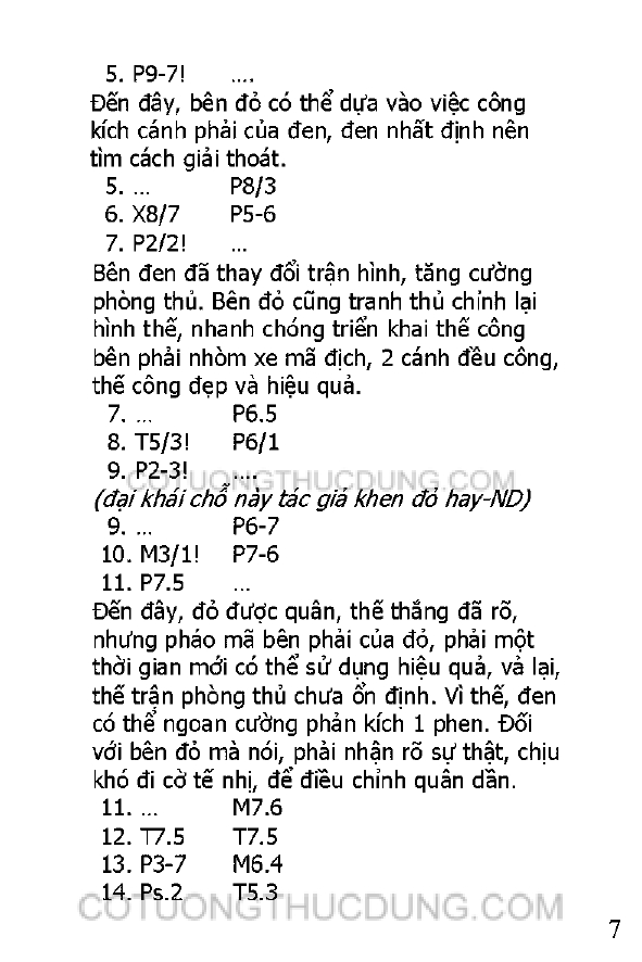 Và đó chính là những gì mà một người chơi cờ cần đến đầu tiên, trước khi biết đến sự tinh tế của tàn cục, sự phức tạp và sức sống mãnh liệt của các phương pháp khai cuộc. Nếu bạn đọc mong tìm ở đây những hình mẫu để áp dụng ngay vào việc tiêu diệt địch thủ trước bàn cờ, hay những biến hóa tối tân thì sợ rằng hơi khó tìm ra, cũng như tối trước kia.