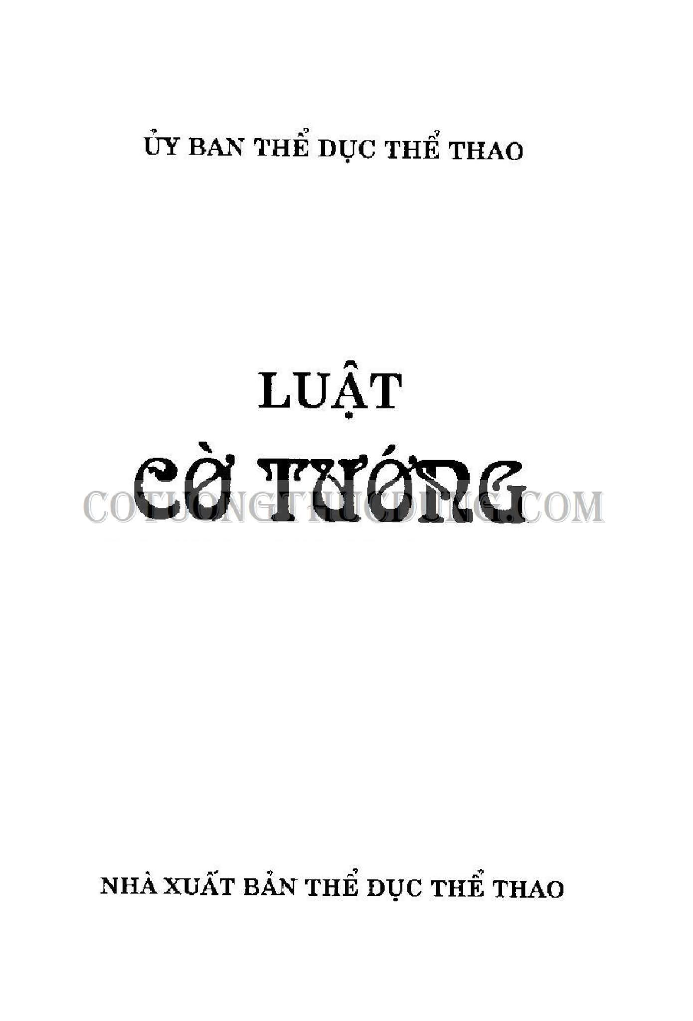 Trước tất cả những đòi hỏi đó. Ban chuyên môn cờ Tường thuộc Liên đoàn Cờ Việt Nam đã soạn thảo quyển Luật cờ Tướng này để các kỳ thủ, trọng tài, các nhà tổ chức… tiến hành thuận lợi công tác điều hành các trận đấu, các giải cờ trong phạm vi toàn quốc.
